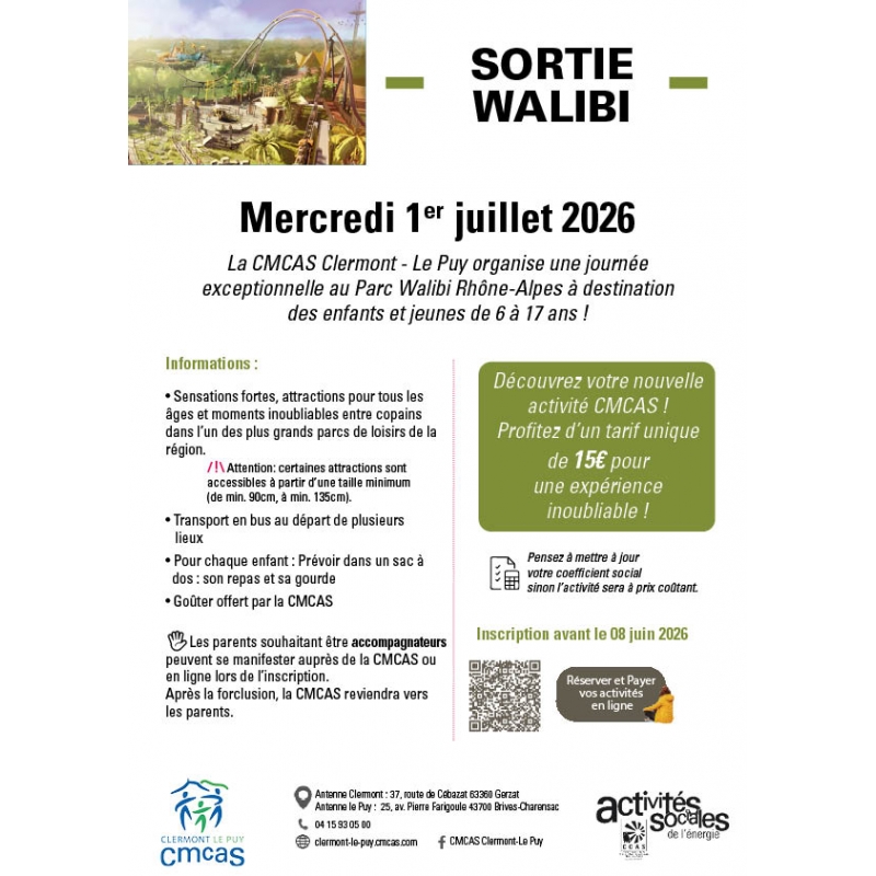 La CMCAS Clermont–Le Puy organise une journée exceptionnelle au Parc Walibi Rhône-Alpes à destination des enfants et jeunes de 6 à 17 ans !